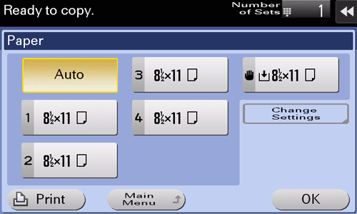 Paper Tray | Specifies the paper loaded in the paper tray when making a copy. The displayed contents vary depending on the options installed on this machine. |