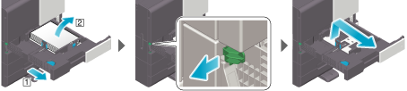 When removing pieces of paper in the paper tray (Tray 1/2)