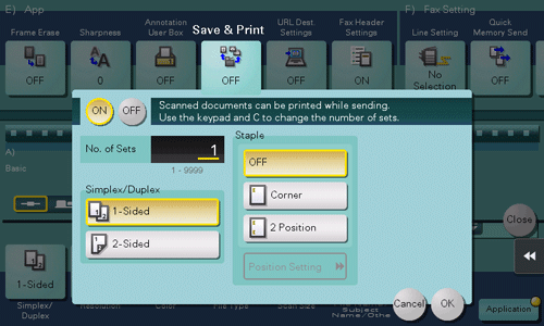 [ON]/[OFF] | Select [ON] to perform sending and printing at the same time. |