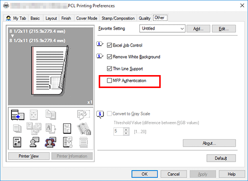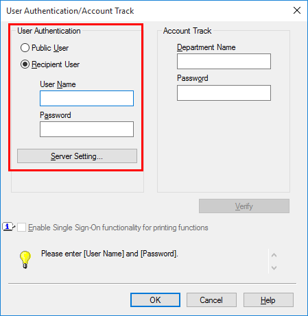 If your computer can communicate with this machine, clicking [Verify] executes authentication based on the authentication information that has been input. You can check the authentication information for errors before starting printing.