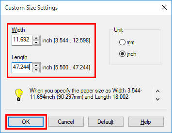 In [Original Size] in the [Basic] tab, select [Custom Size].