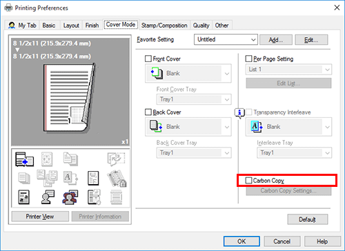 In the [Cover Mode] tab, select the [Carbon Copy] check box.