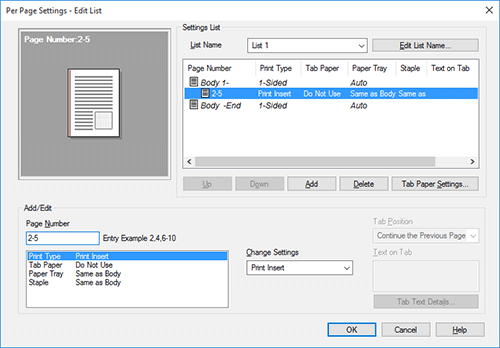 [Page Number] | Enter the page numbers you want to add. To specify multiple page numbers, separate each number with a comma (for example, "2,4,6") or connect the numbers using a hyphen (for example, "6-10"). | |