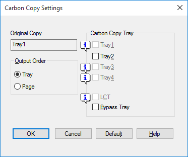 [Carbon Copy Tray] | Select the paper tray for carbon copies. Select the check boxes for all paper trays to be used. |