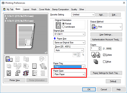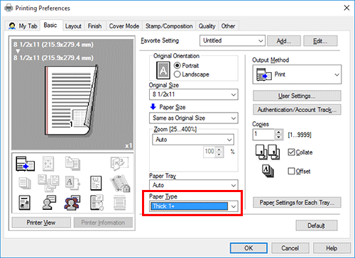 In [Paper Type] in the [Basic] tab, select the type of paper for printing.
