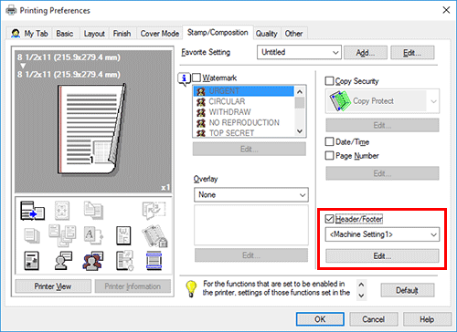 In the [Stamp/Composition] tab, select the [Copy Security] check box, and then select [Stamp Repeat].