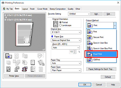 In [Output Method] in the [Basic] tab, select [Proof Print].