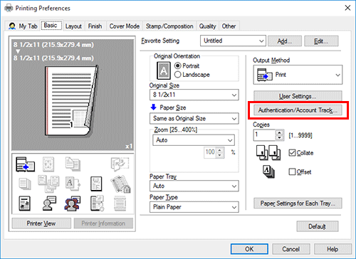 In the [Configure] tab of the printer driver, check that the User Authentication/Account Track setting is correctly configured.
