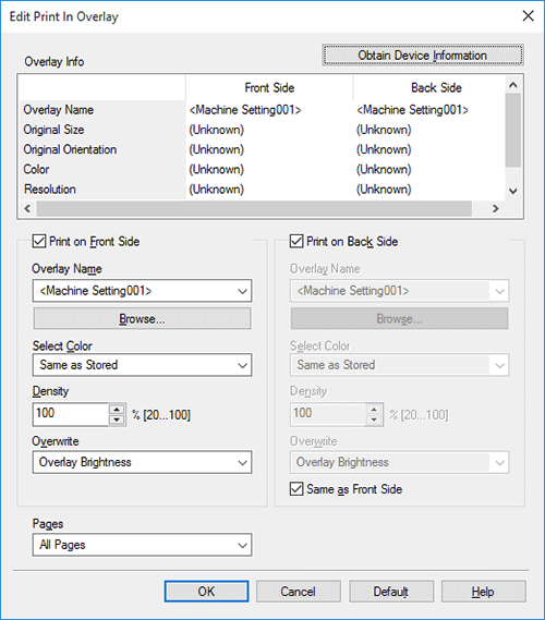 When printing images on both sides, selecting the [Same value for Front and Back sides] check box applies the same settings to both sides.