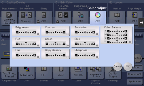 Adjust the color quality of the original for copying. You can check the finishing by printing a sample copy.