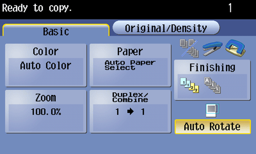 Pressing the Enlarge Display key enlarges text on the Touch Panel. To use Enlarge Display, slide the Control Panel to the left.