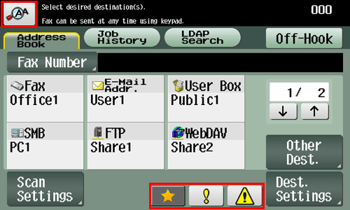 ![]() | Tap this icon to recall the scan/fax program. |