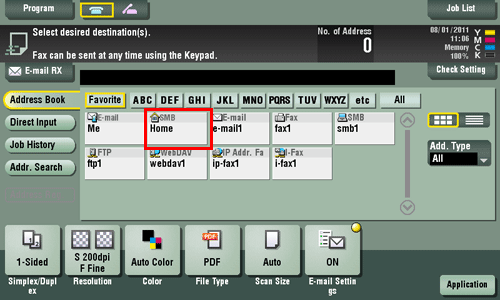 If you log in to this machine while user authentication is installed on this machine and Active Directory is used as an authentication server, the [Home] key appears in the [Address Book] screen.