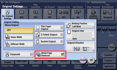 Select this check box when scanning an original which contains blank pages. Blank pages detected are not counted as original page.