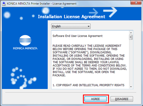 Read the license agreement, then click [AGREE].