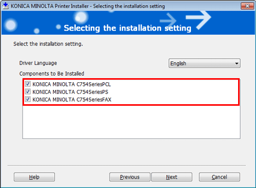 Select the check box of the printer driver you want to install, then click [Next].