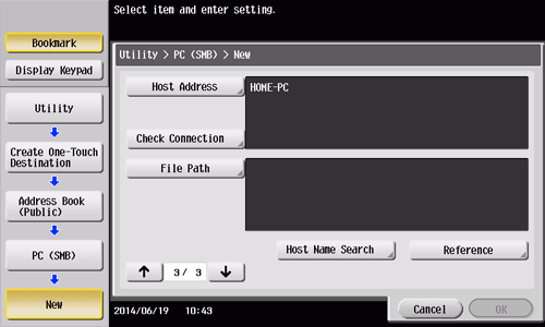 • You can also register an SMB destination using Web Connection. For details, refer to Here.
