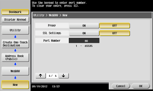 • You can also register a WebDAV destination using Web Connection. For details, refer to Here.