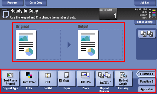 To configure various copy settings smoothly, you can collectively display the basic copy settings in a single screen, and arrange frequently-used keys in the main screen. For details, refer to Here.