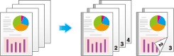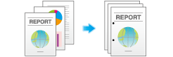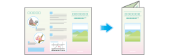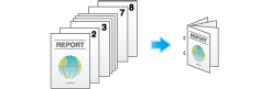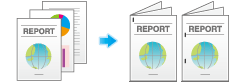 The pages in the original data are arranged and spread in a booklet format and printed on both sides of sheets. You can also specify the binding position, or insert front and back covers.