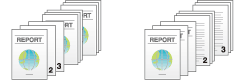 Each set of copied sheets is stapled (in a corner or two positions) before it is output. This function is useful for preparing a project proposal or other booklet materials.