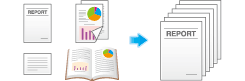 Originals are scanned with different settings for each set, and copied collectively. Use this function when various types of originals are mixed, such as 1-sided original to be printed on one side of paper, and 2-sided original to be copied by enlarging. After all originals have been scanned, you can add page numbers or finishing functions, such as sort, to copy them.