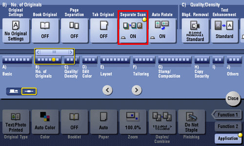 In [Separate Scan], you can switch between the ADF and Original Glass for scanning the originals.
