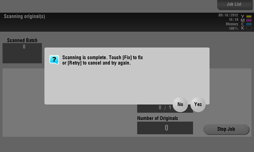 To scan the original again, tap [No]. Tap [Change Setting] to change the copy settings.