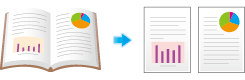 You can copy a two-page spread separately into two pages with single operation, with no need of scanning each page separately. Place the two-page spread in the ADF.