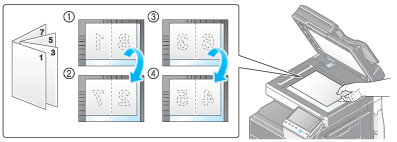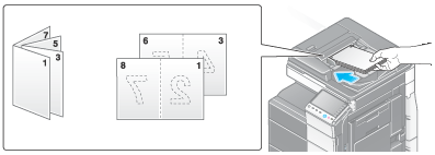 When you use both the book original and 2-sided copy functions and staple the copied sheets, you can easily create simple books.