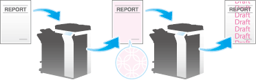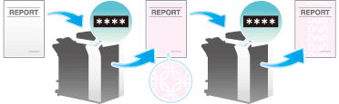 Password Copy is a copy protection function that prints concealed security watermarks such as "Private" or a date in the background to prevent unauthorized copying, and embeds a password for the password copy function on all printed sheets.