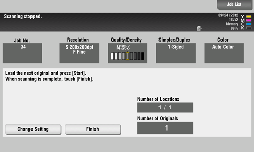 If the number of original sheets is so large that they cannot be loaded into the ADF at the same time, you can load them in several batches and handle them as one job.