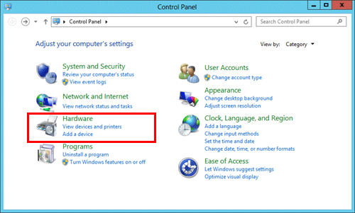 In Windows Server 2012/Server 2012 R2, open the Start window, then click [Control Panel] - [Hardware] - [View devices and printers].
