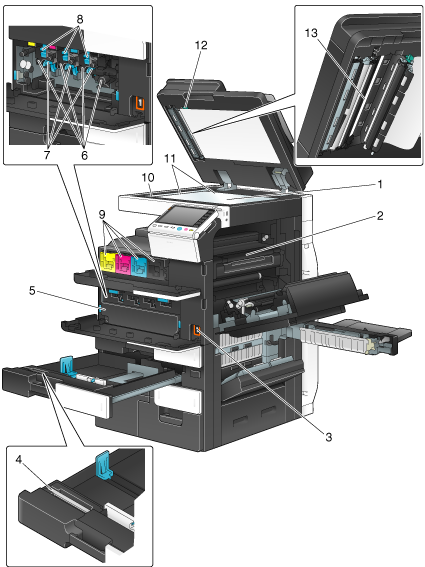 14 | Bypass Tray Door | Open this door when clearing a paper jam in the Bypass Tray. |