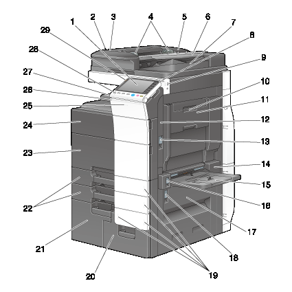 9 | Toner Cartridge | This machine provides Toner Cartridge in four colors: cyan (C), magenta (M), yellow (Y), and black (K). A full-color image is created by combining the four toner colors. |