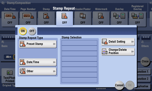 • [Date/Time]: Select a format (type) of date and time to be printed. The date/time when the original was scanned is stamped on the paper.