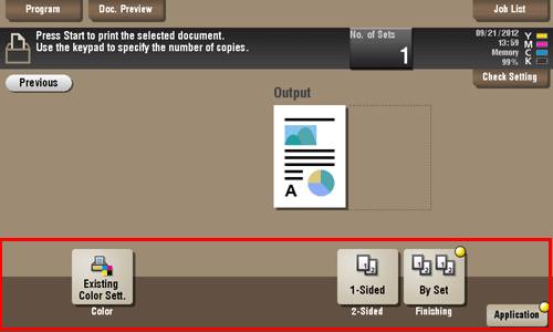 [Basic Setting] | You can set a number of copies, 2-sided Print, Color, and Finishing if necessary. |