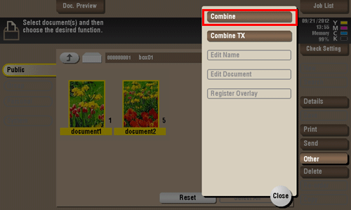 When printing multiple files at the same time, you can combine those files and handle them as a single job. This is called the Combine printing.