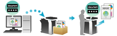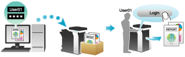 ID & Print is a function that saves print data to the ID & Print User Box of this machine when user authentication is installed. This function does not print data immediately, thereby preventing printed materials from being missing or left. You need to perform user authentication on this machine to print the data saved in the User Box. Therefore, this function is suitable for safely printing highly confidential documents. When authentication succeeds, the print data of the login user is automatically printed. This enhances security as well as ensures smooth operation.